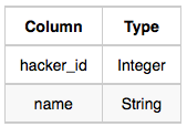 Hackers: The hacker_id is the id of the hacker, and name is the name of the hacker.